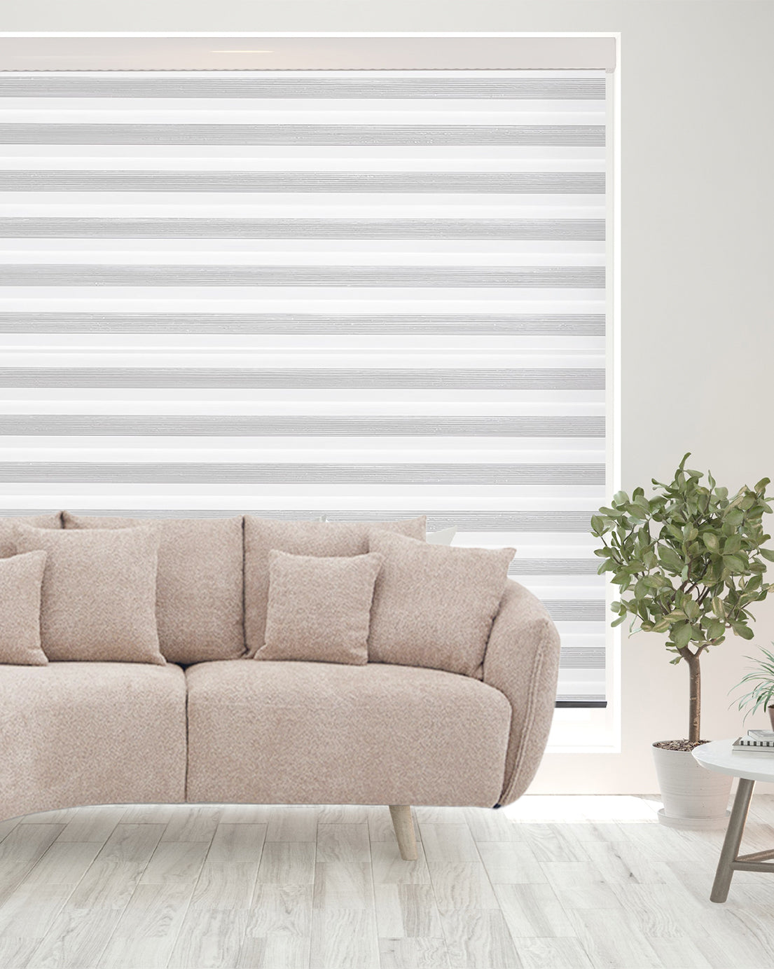 Nuestra cortina Shangrila dos pulgadas permite deslizar y traslapar sus franjas para que puedas graduar el nivel de iluminación y privacidad que quieres en el ambiente. La tela otorga una protección a tus muebles de los rayos UV y esta diseñada para darle un toque moderno, elegante y personal.