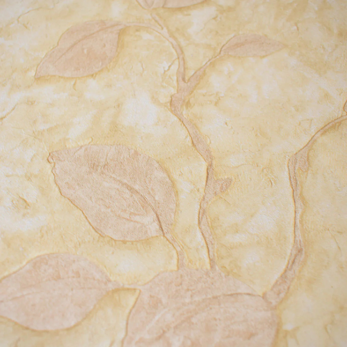 Textura/Relieve: Tanto el fondo como el patrón de las hojas presentan una textura notable y táctil (relieve). Las hojas parecen estar grabadas o prensadas sobre el fondo, y el fondo mismo imita la aspereza de un material natural, lo que le da una gran profundidad y dimensión.