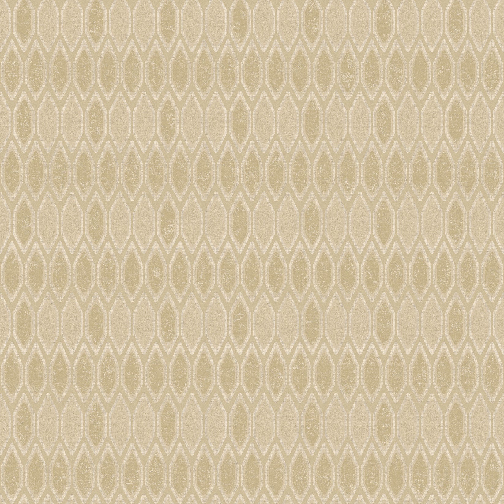 El papel tapiz tiene un diseño sutil y minimalista con un patrón de figuras geométricas en forma de rombo que se repiten en líneas verticales. El color de fondo es un tono crema o beige muy claro, y el patrón es un tono ligeramente más oscuro, creando un contraste delicado. El diseño es lo suficientemente discreto como para no dominar la habitación, pero lo suficientemente interesante como para añadir una textura visual y profundidad a la pared.