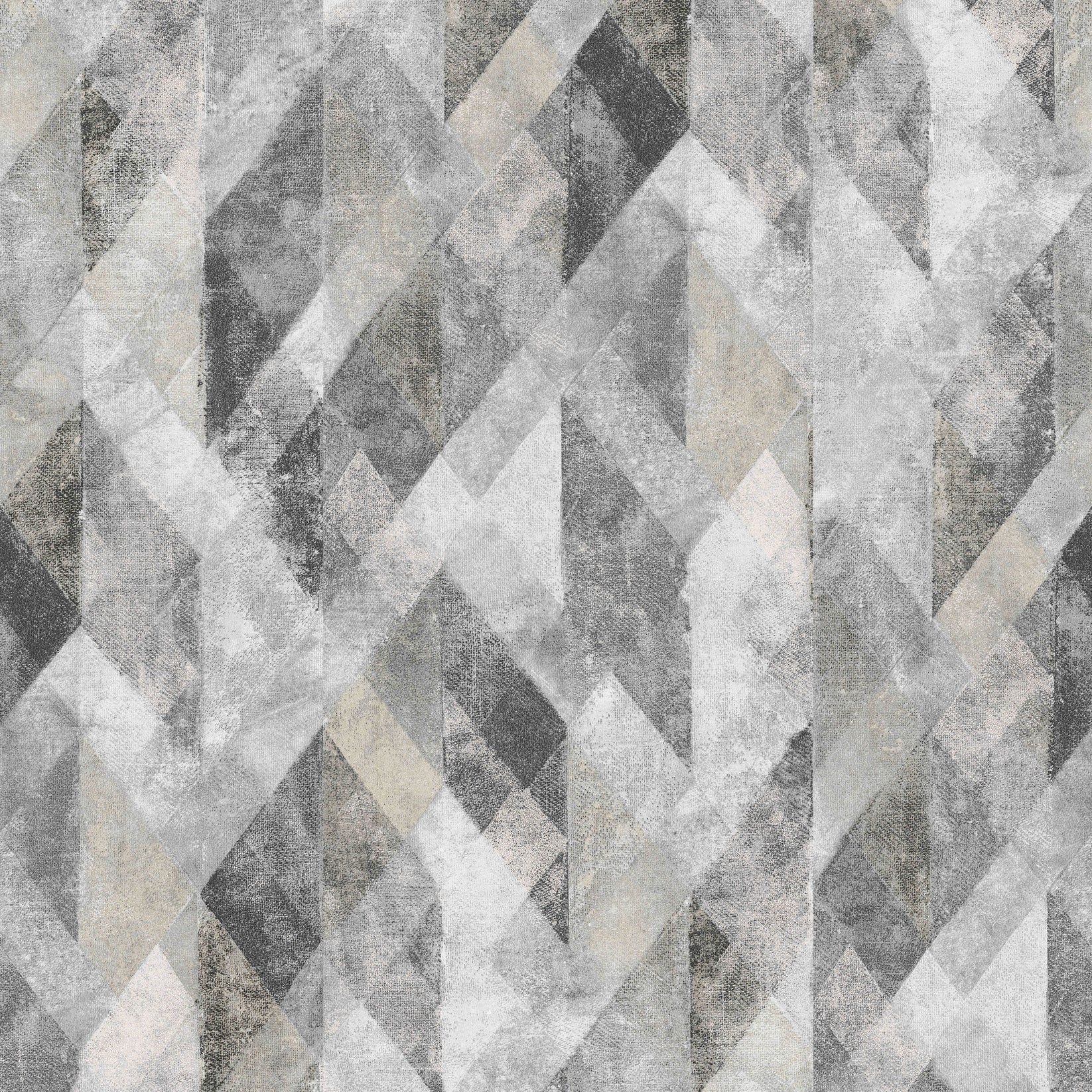 Este papel de colgadura tiene un diseño geométrico de triángulos y rombos que se entrelazan creando un patrón tipo zig-zag.