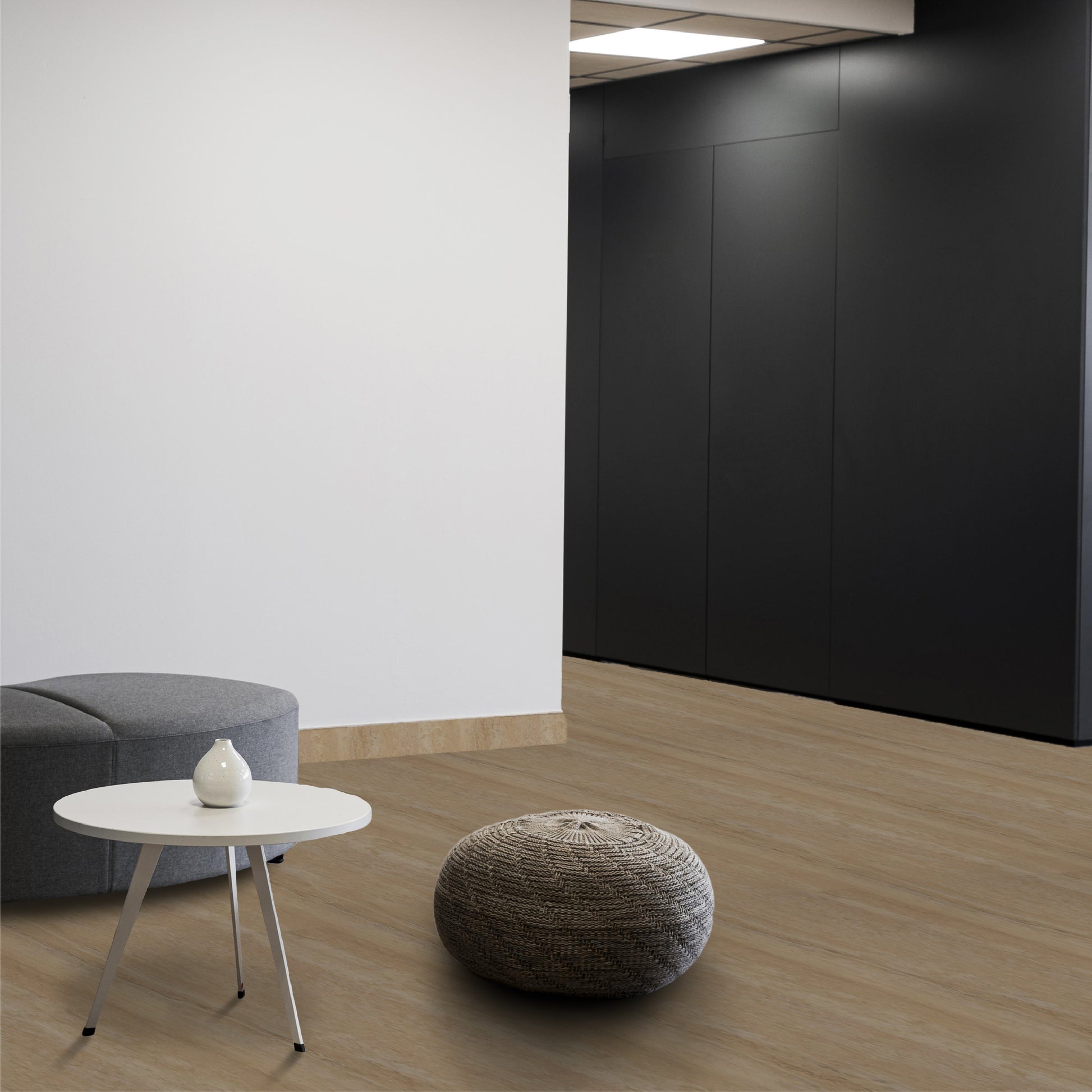MATERIAL: SPC (Compuesto por polvillo de piedra caliza y resinas plásticas, PVC y capa de rodamiento)