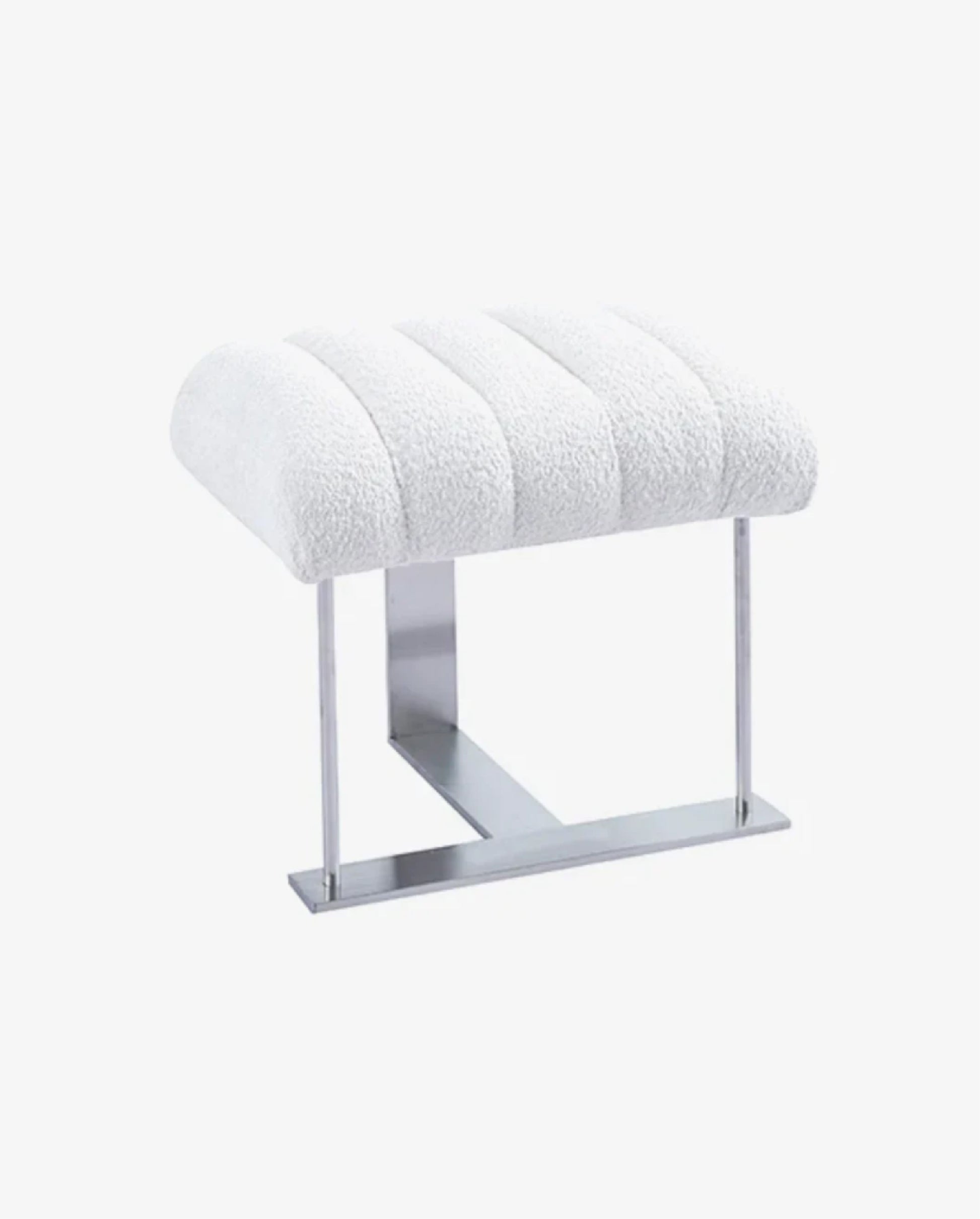 La base del puff está fabricada en acero inoxidable, y puedes elegir entre un acabado plateado o dorado, según tus preferencias personales y la estética de tu espacio. Ambas opciones añaden un toque de lujo y brillo al diseño general, haciendo que el puff sea aún más atractivo.
