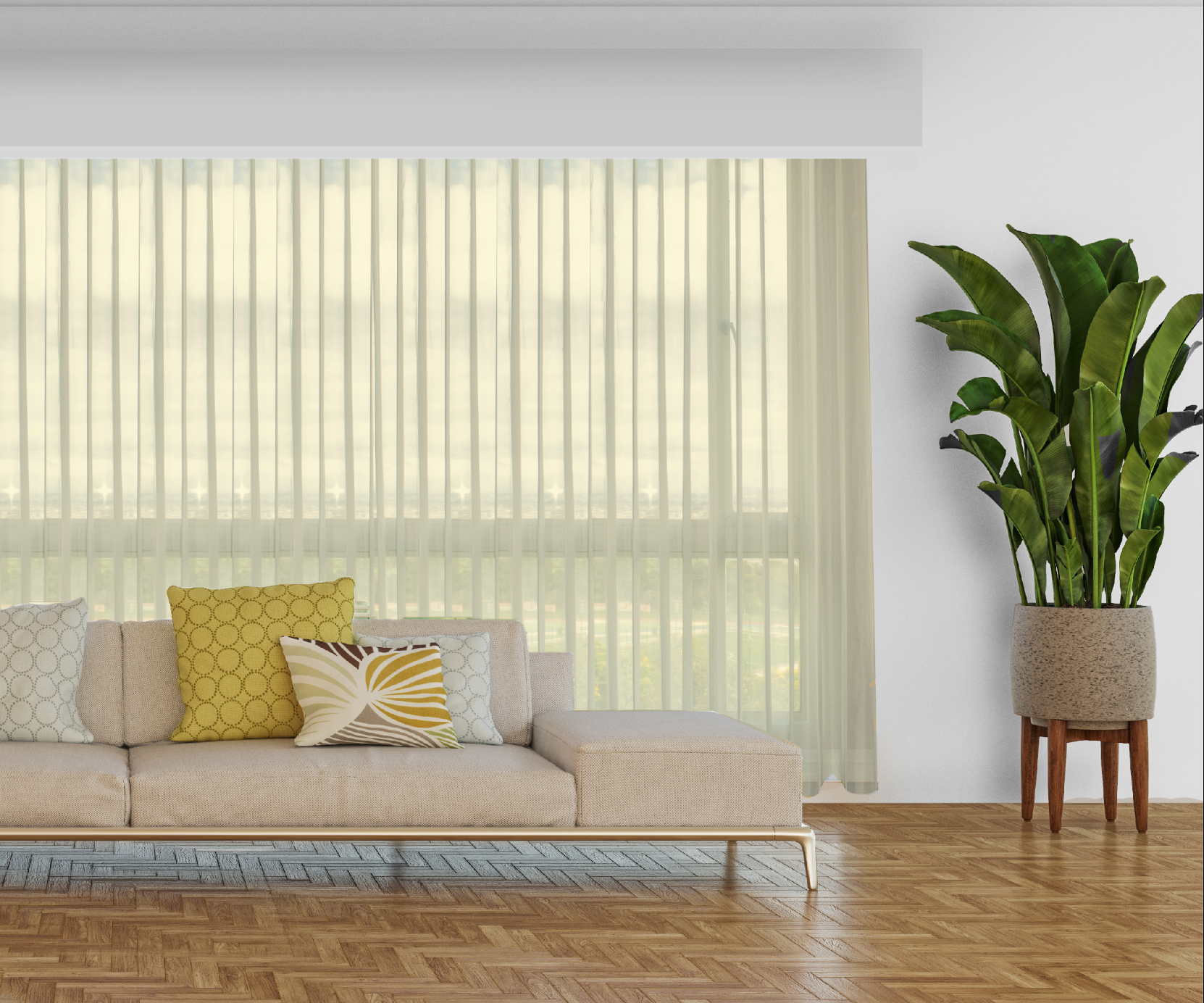 La Vertishade 002 de Vertiblinds, es perfecta para decorar tus salas, balcones, grandes ventanas de techo a piso, dándoles un toque de vida, modernidad, innovación y elegancia a tu hogar. Permite el paso de la luz moderado para que regules la luminosidad de tus ambientes, fácil de combinar con tus muebles y accesorios.